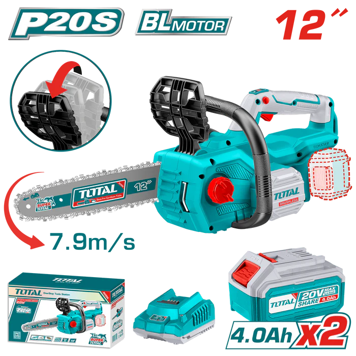 The TGSLI201286 Lithium-Ion Chain Saw is a powerful and cordless solution for cutting, pruning, and general woodwork tasks. Equipped with a high-capacity lithium-ion battery, it delivers consistent power and long runtime without the restrictions of cords or fuel. Its sharp, durable chain ensures clean and precise cuts, while the ergonomic handle and well-balanced design provide comfort and control during extended use.